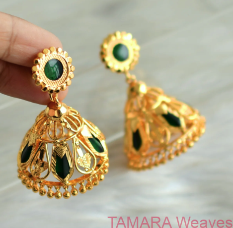 Traditional dangling jewellery with inverted dome shaped hangings – often set in various styles like Kemp, Temple, Kerala Traditional and Jadau to add timeless elegance to South Asian fashion.