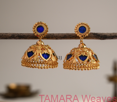 Gold tone blue palakka 5 petal jhumka – microplated with 18k gold